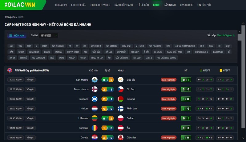 Nếu anh em bận không xem được trực tiếp, thì tính năng kqbd của Xoilac Vnn chính là cứu tinh. Trang cập nhật kqbd của hàng trăm giải đấu lớn nhỏ trên toàn thế giới, từ Premier League, Bundesliga, Champions League cho đến các giải châu Á, thậm chí là giao hữu quốc tế. Điều mình thích là tốc độ cập nhật cực nhanh. Chỉ vài giây sau khi trọng tài thổi còi, kqbd đã hiển thị đầy đủ: tỷ số, cầu thủ ghi bàn, thẻ phạt, thời gian bàn thắng, thậm chí cả biểu đồ thống kê kiểm soát bóng.